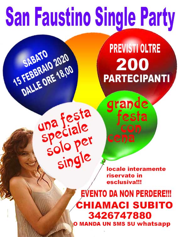 Sabato 15 Febbraio l'appuntamento per single più importante dell'anno: San Faustino, Festa dei single!